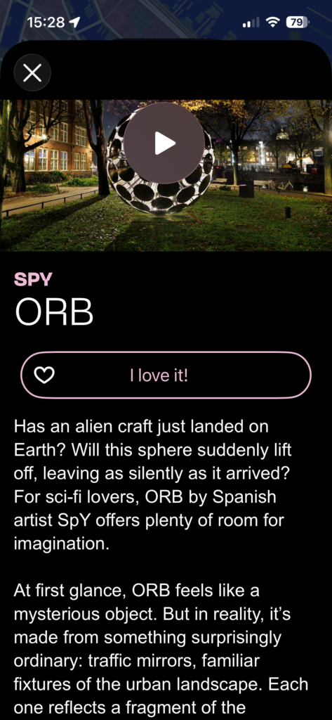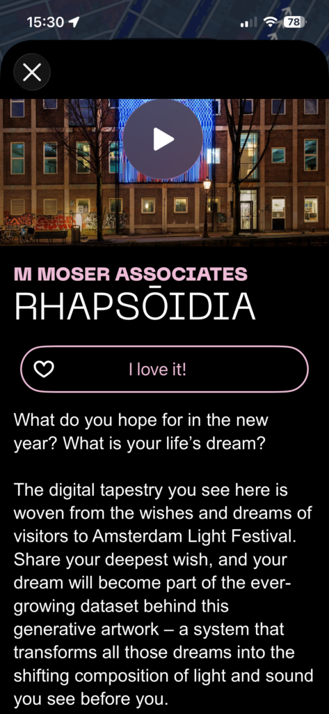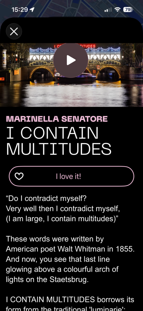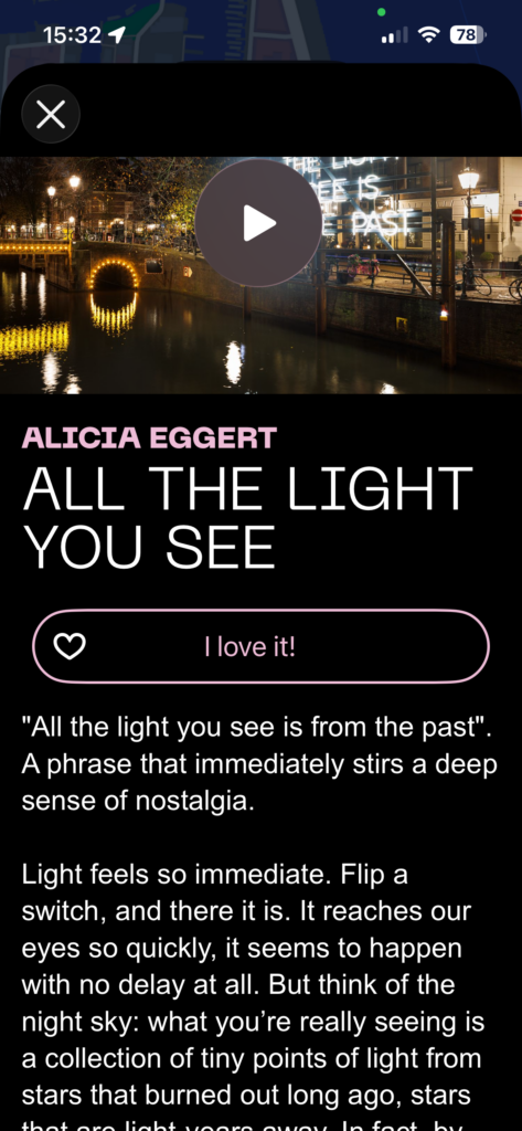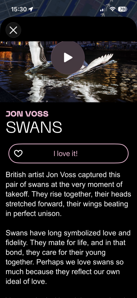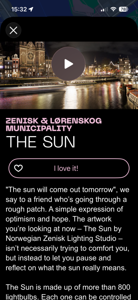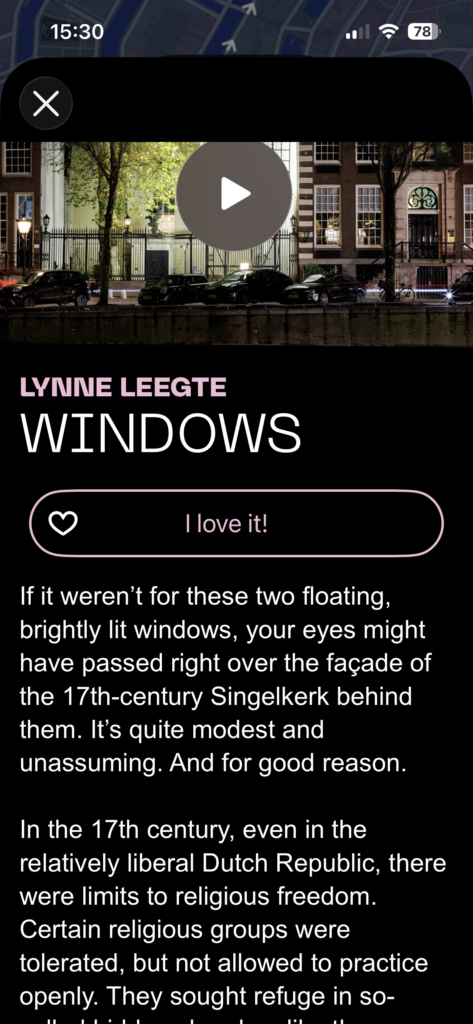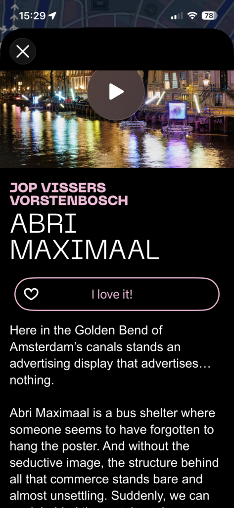 Let op: eerst naar het poort-icoontje (OBA, steiger voor de openbare bibliotheek) lopen. De vaarrichting is tegen de richting van de klok in!
